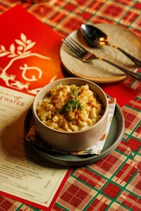 This holiday menu was inspired by the way different countries around the world celebrate the season. From turkey in a bun, reimagining the comfort of a North American classic, to panettone turned into arancini, blending Italian tradition with playful technique—each dish is a tribute to festive flavors, seen through my own lens.