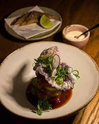 Burgers and fries were already at the heart of the menu—and I leaned into them as a foundation. Not just as bar staples, but as a way to create balance between comfort and contrast in the overall experience. Around them, I developed new offerings that spoke to my journey: the Tuna Crudo, inspired by my time in Shanghai and the view from the Pearl Tower; the Chili Chicken, a nod to Beijing-style heat and richness; and the Japanese-Mexican Fish Taco, where tempura technique met the tortilla canvas in one of my favorite cultural merges.