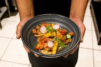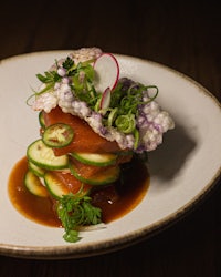 The menu I helped shape was a playful yet intentional reflection of my experiences as a traveler and as an immigrant in Toronto—a city where global culture lives at street level. I used that lens to build an internationally inspired food program that could stand up to the bar’s bold drinks and vibrant atmosphere.